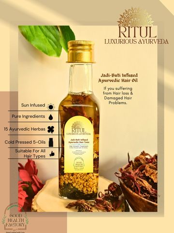 This oil is prepared with the goodness of 🌿 25 jadi-buti herbs and 5-10 hair boost oils (Cold pressed Coconut oil, Sesame seeds oil, Black Onion Seed oil, Castor oil, Almond oil).