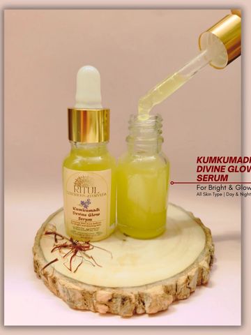 Serum is infused with goodness of - Pure Saffron, Aloevera, Vitamin-E, Sandalwood, Manjistha, Licorice root, Lotus flower extract, Vetiver root.