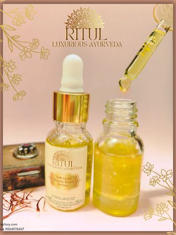 Oil is Infused with Pure Saffron, 24 K Gold, Sandalwood, Licorice root, Manjistha, Lotus flower, Vetiver root.